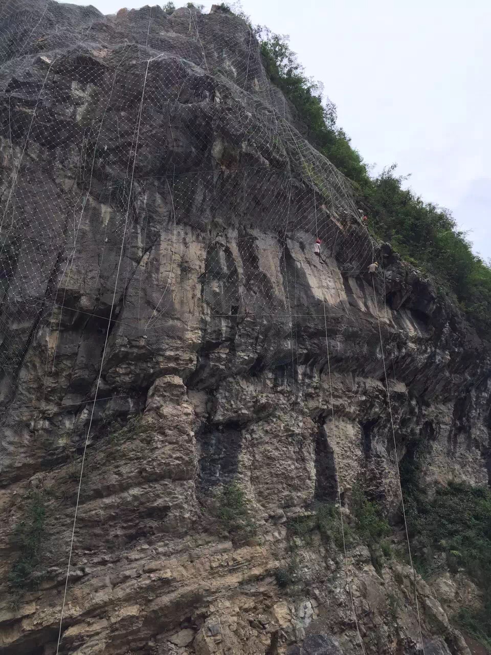 SNS被动防护系统采用高强度热镀锌钢丝绳、钢丝网,不低于AB级的防腐处理,其防腐寿命根据环境条件的不同一般可达到30-50年不等。被动防护系统主要对边坡飞石、落石、雨水过多造成的坡体坍塌,防护能量级内的滑坡、泥石流等防治,减轻灾害的受损程度,其系统与相结合的消能装置、支撑柱、支撑绳及拉锚绳等,拦截能量可达到500KJ—1000KJ。