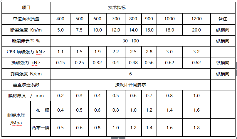 防水土工布抗拉、抗撕裂、顶破等物理力学性能指标高,能满足水利、市政、建筑、交通、地铁、隧道等土木工程需要。由于其选用高分子材料且生产工艺中添加了防老化剂,故可在非常规温度环境中使用。