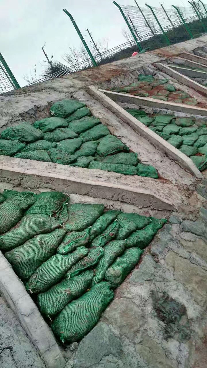 植生袋: 以PP(聚丙烯)为原材料,经圆扁丝编织加工而成的绿色网袋,具有高孔率的边坡护理袋。