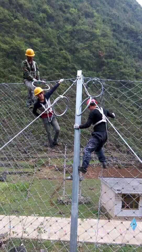 SNS被动防护系统采用高强度热镀锌钢丝绳、钢丝网,不低于AB级的防腐处理,其防腐寿命根据环境条件的不同一般可达到30-50年不等。被动防护系统主要对边坡飞石、落石、雨水过多造成的坡体坍塌,防护能量级内的滑坡、泥石流等防治,减轻灾害的受损程度,其系统与相结合的消能装置、支撑柱、支撑绳及拉锚绳等,拦截能量可达到500KJ—1000KJ。