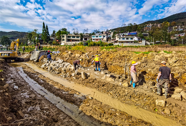 近日,来到贵州省瓮安县肖家滩段河道治理工程岩面河段施工现场,伴随着各种机械设备的轰鸣声,10多名工人们正忙着捡石头、搬泥浆、砌河堤,大家抢抓秋冬“黄金期”,忙得热火朝天,争分夺秒安全科学地抢抓建设进度。