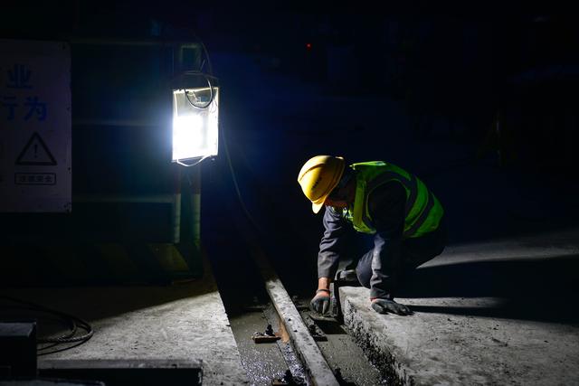 4月10日,工人在贵州省黔西市凹水河水库大坝上连夜施工。新华社记者 杨文斌 摄