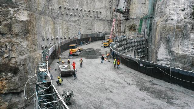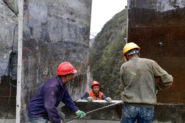 4月10日,工人在贵州省黔西市凹水河水库大坝上施工。新华社记者 杨文斌 摄