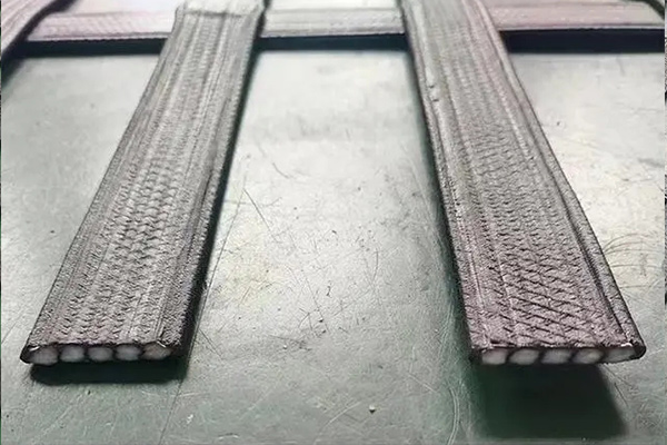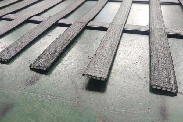 高韧性聚酯纱线集束格栅为采用高强度、高韧性、高分子模量聚酯纱线集束成股后外覆PE鞘套保护层所形成的格栅。
