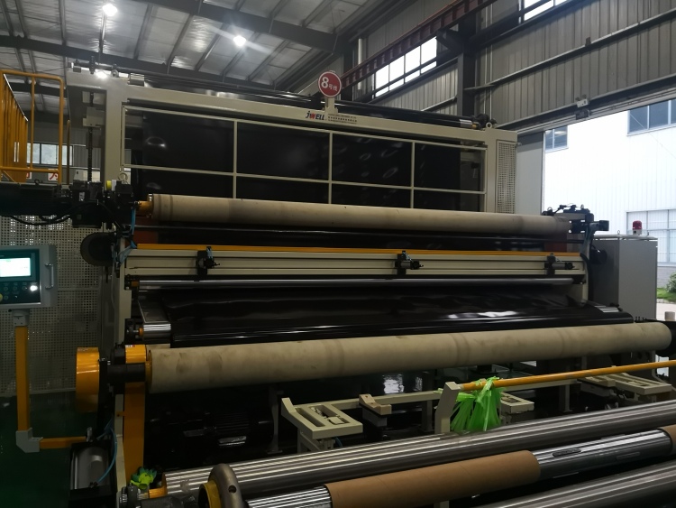 另外一种生产工艺是以高密度聚乙烯树脂为原料,经高温热熔挤出塑化,在压延机上由几根辊筒辗压塑化原料制成的膜,称为压延膜。它是土工合成材料其中的一种,是土建基础领域 防水防渗阻隔新型材料。